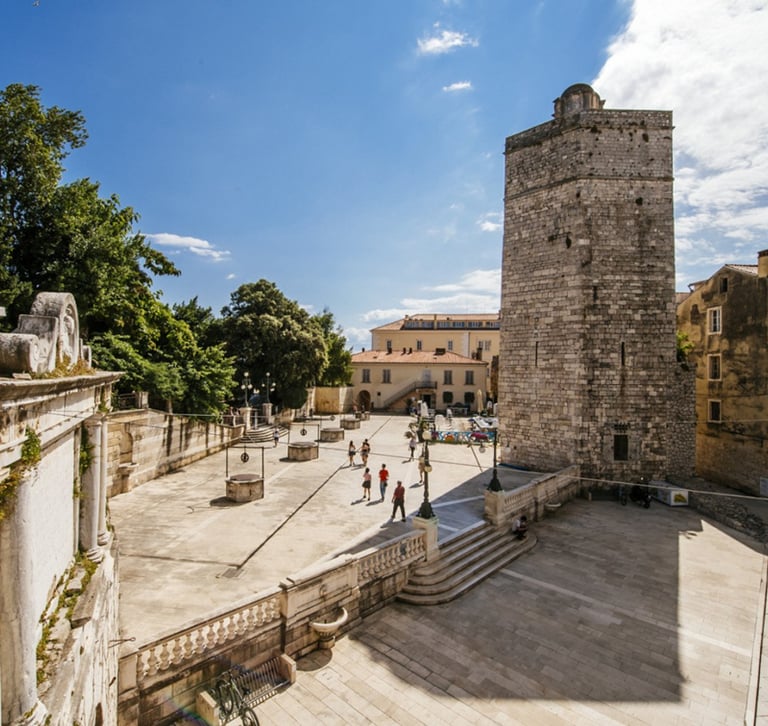 5 Wells Square, once a crucial water source, today invites you to take a walk, capturing the essence of Zadar's grandeur in its timeless design.